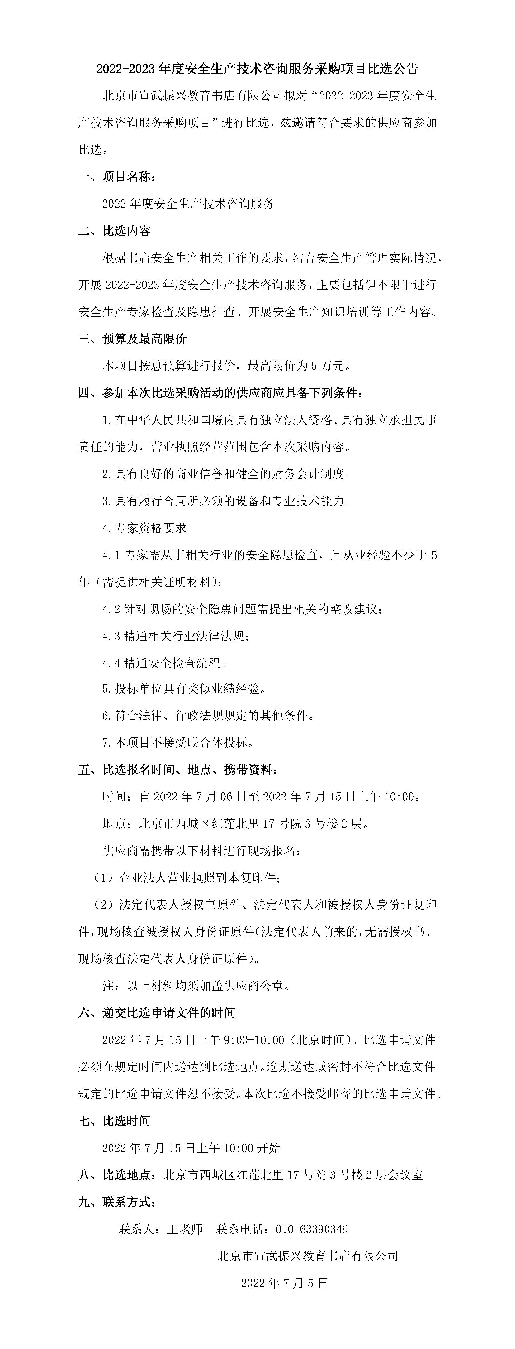2022-2023年度安全生产技术咨询服务采购项目比选公告