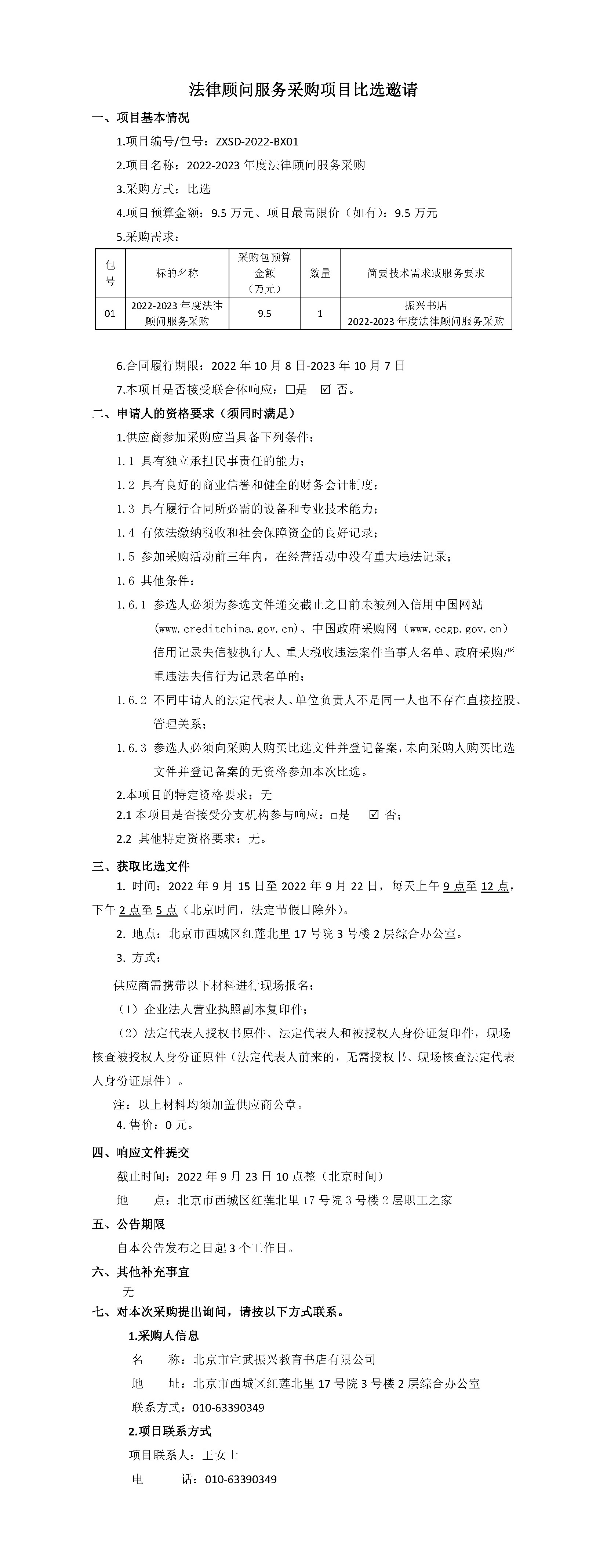 2022-2023年度法律顾问服务采购比选公告