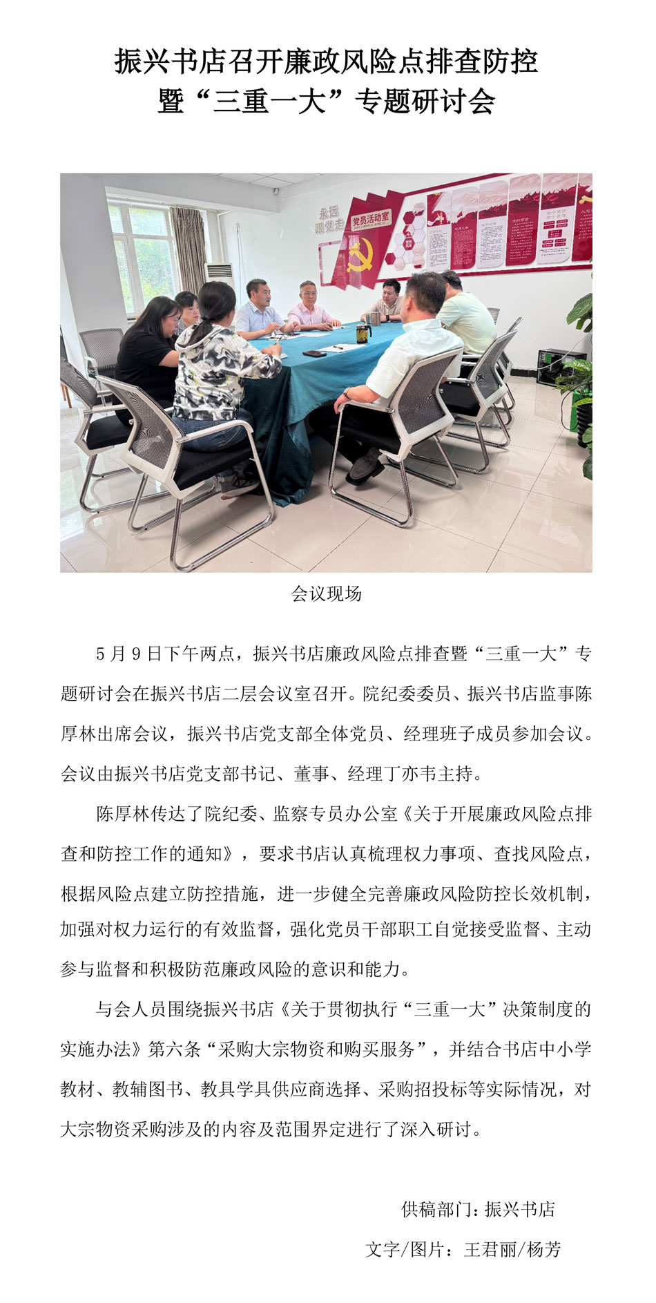 振兴书店召开廉政风险点排查防控 暨“三重一大”专题研讨会