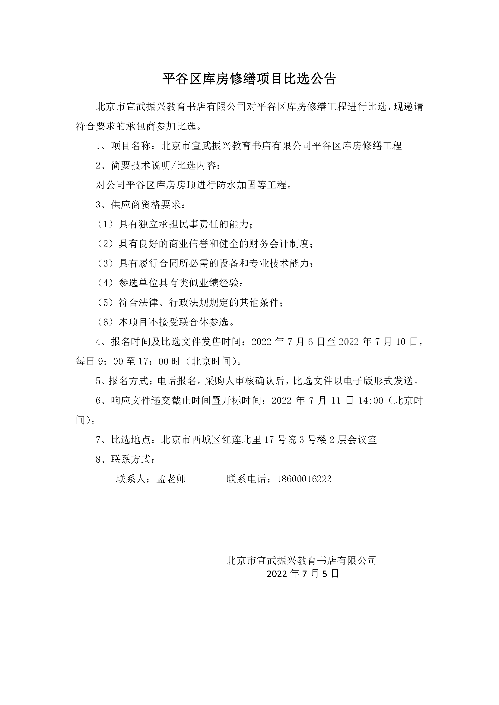 平谷区库房修缮项目比选公告