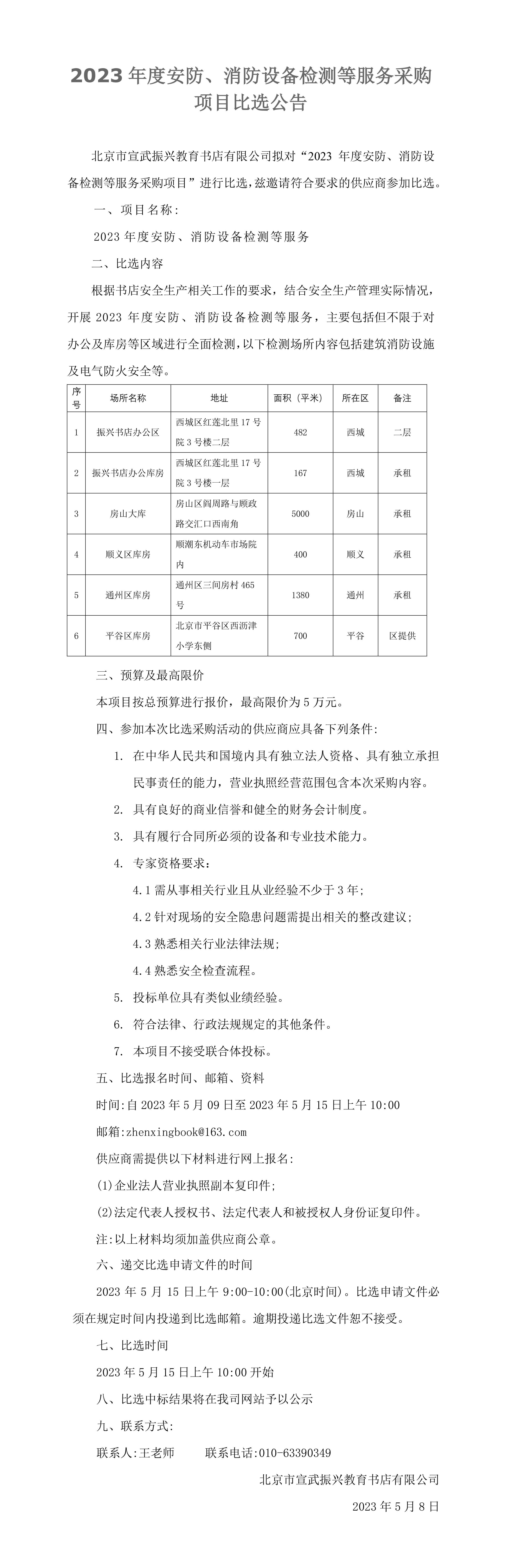 2023年度安防、消防设备检测等服务采购项目比选公告