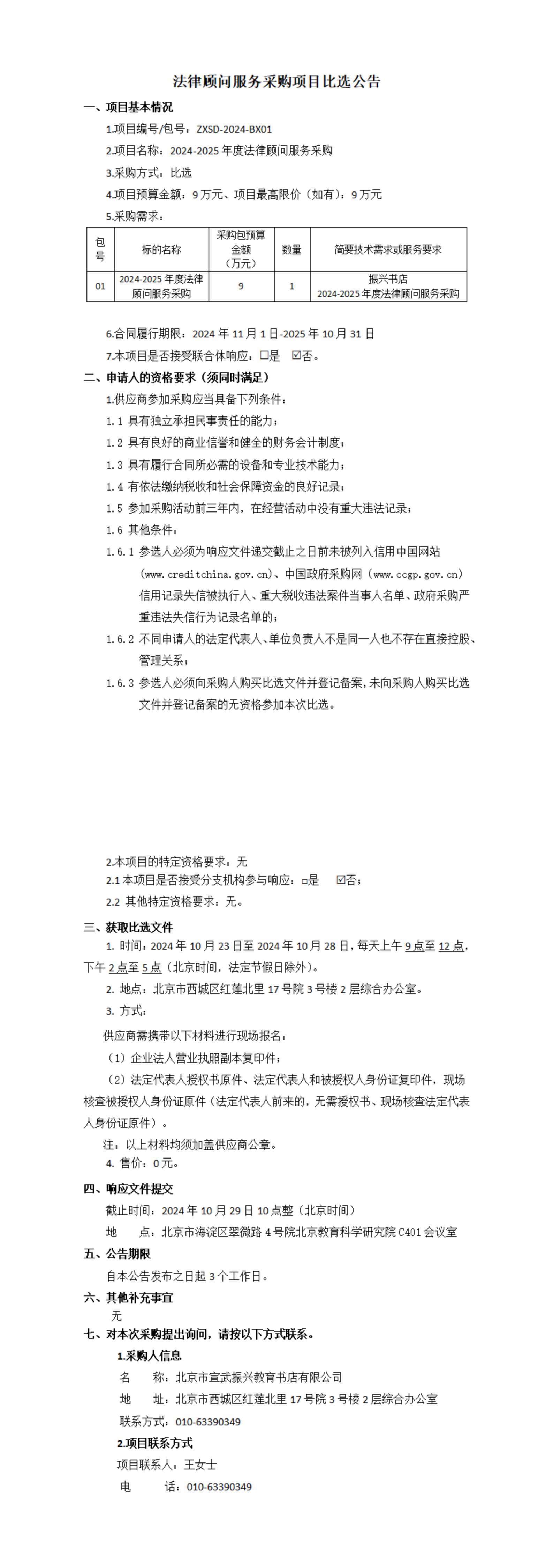 2024-2025年度法律顾问服务采购项目比选公告