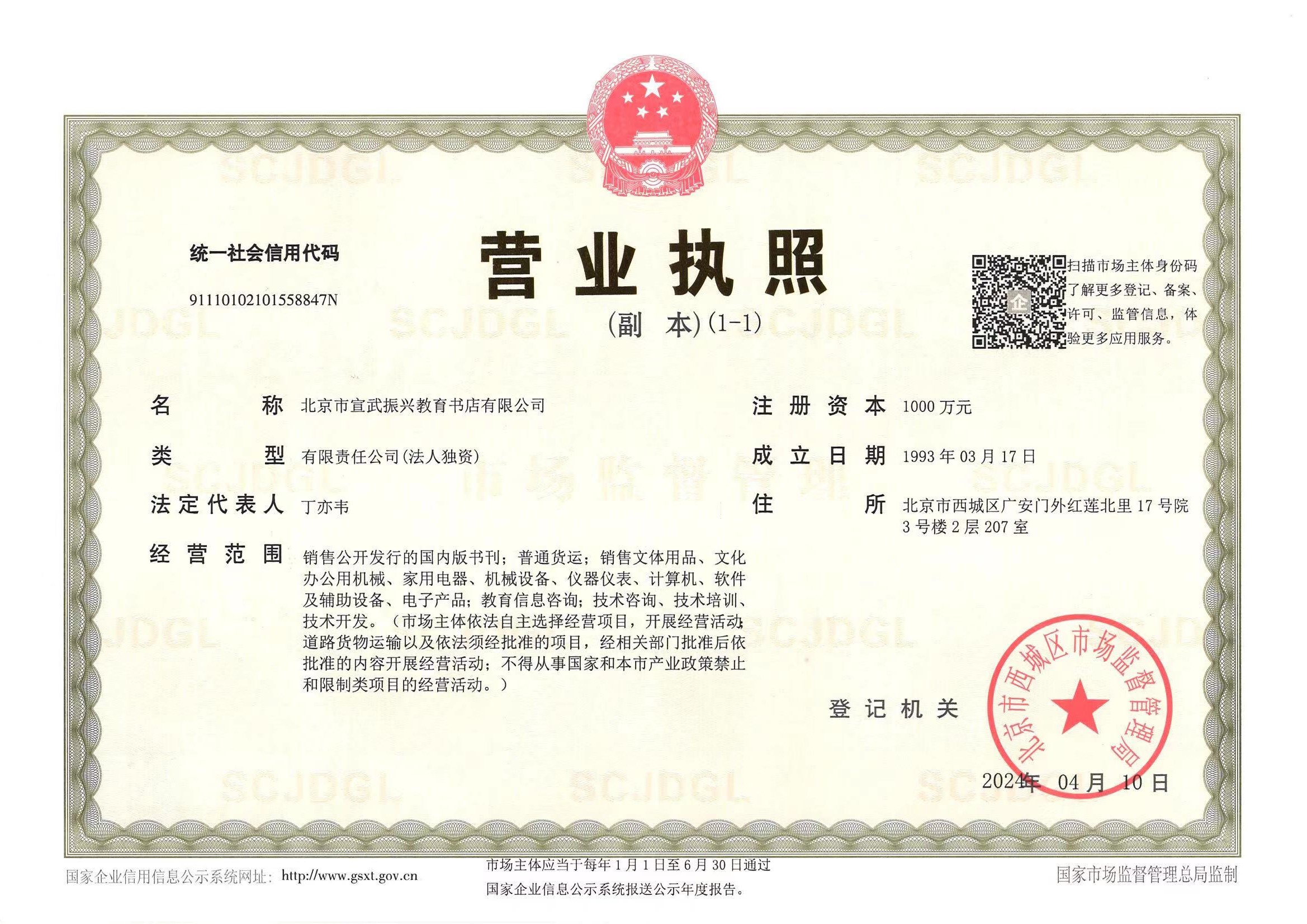 北京市宣武振兴教育书店创办于1988年,1993年正式注册为“北京市宣武振兴教育书店”(以下简称振兴书店),是北京教育科学研究院下属的国有独资企业,具有北京市新闻出版广电局审批通过的出版物批发资质,主要从事北京市基础教育课程改革实验教材及相关教育图书的发行工作。